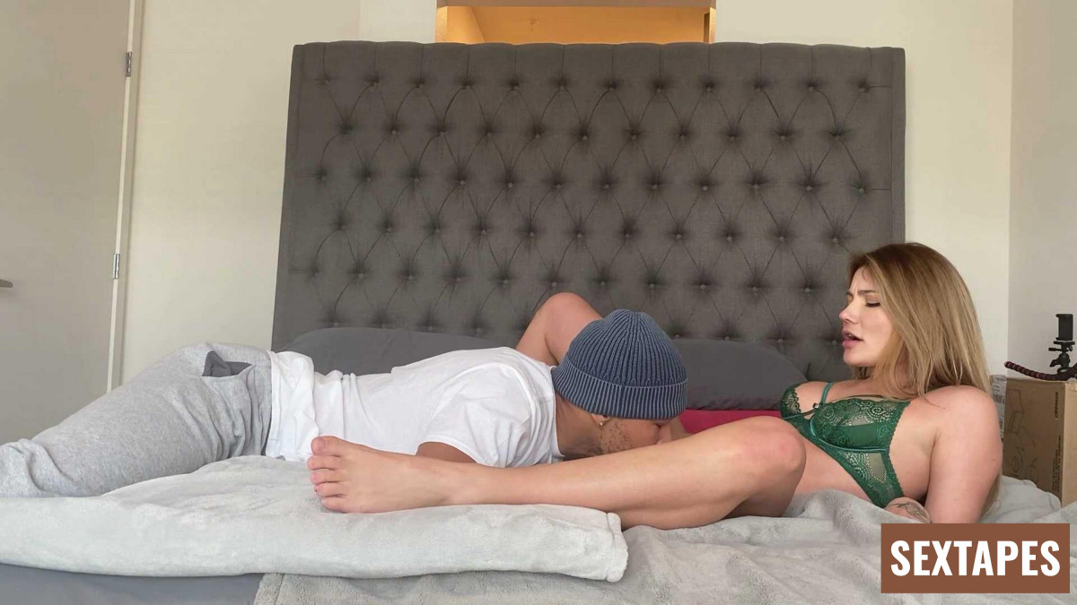 Sextape of a man and a woman having sex on a bed in some hotel. After eating her pussy he fucks her with his bbc in various sex positions. Source: sextapes.com