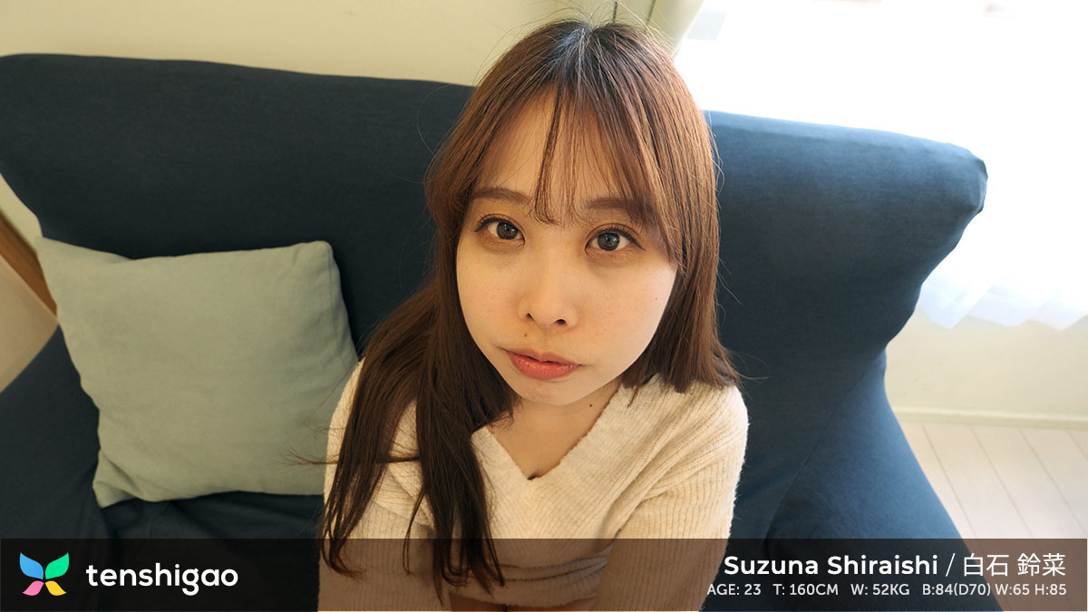 Young Japanese woman, Suzuna Shirashi, lying on a bed, wearing black lingerie and sheer stockings, with long brown hair, light skin, and a soft smile. Source: tenshigao.com